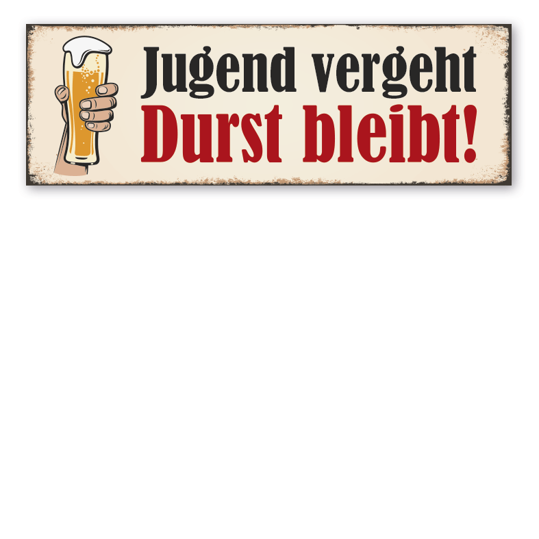 Merkmale des Retro-Schildes Jugend vergeht - Durst bleibt - VIN-2131: