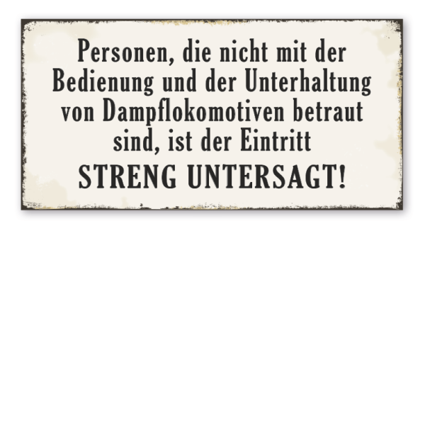 Merkmale des Retro-Schild Personen, die nicht mit der Bedienung und der Unterhaltung von Dampflokomotiven betraut sind, ist der Eintritt streng untersagt - VIN-2419: