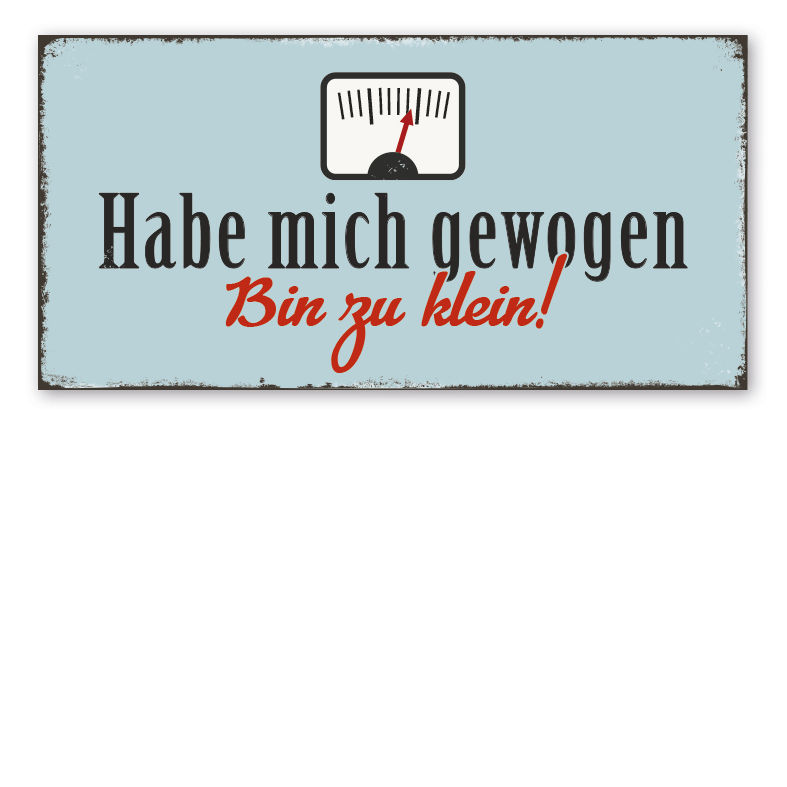 Merkmale des Retro-Schildes Habe mich gewogen - Bin zu klein - VIN-2474: