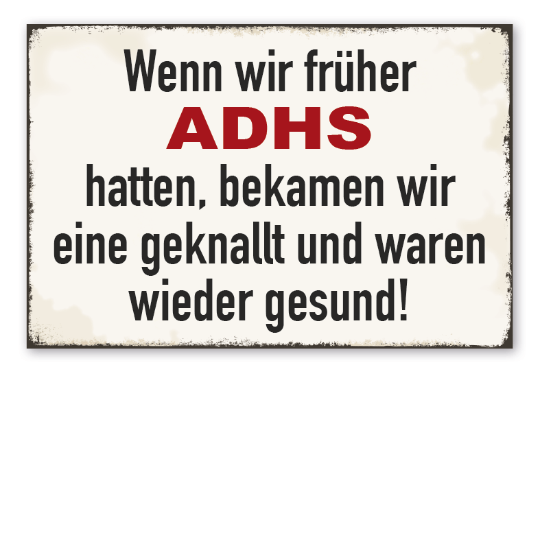 Produktinformationen "Retro Schild Wenn wir früher ADHS hatten, bekam wir eine geknallt und waren wieder gesund"