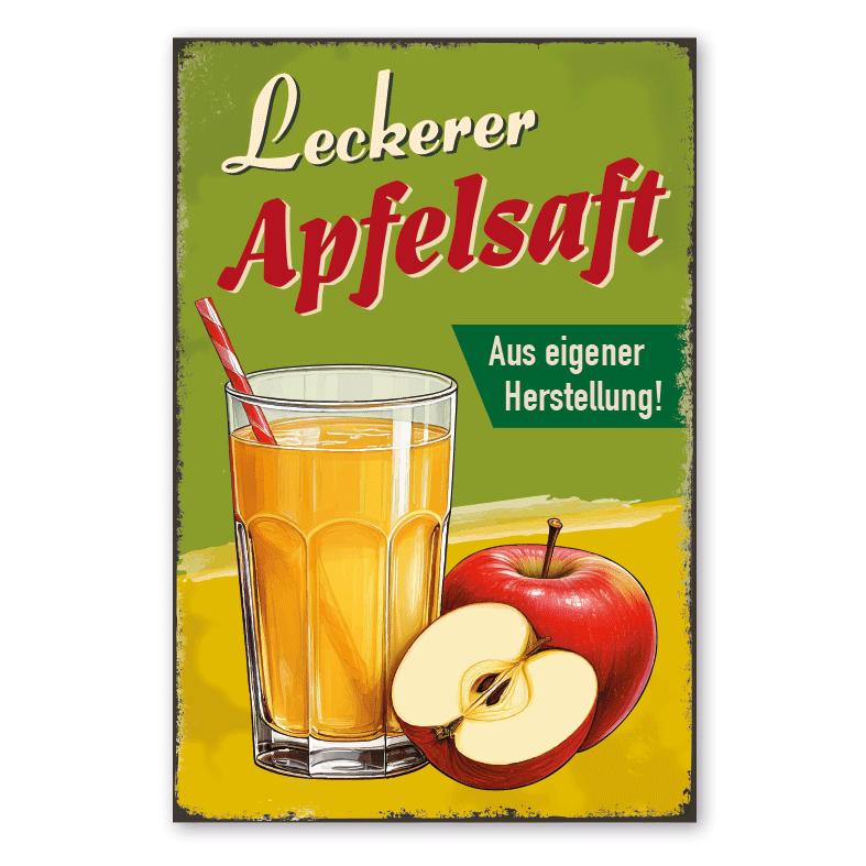 Merkmale des Retro Schildes Leckerer Apfelsaft - Aus eigener Herstellung - VIN-2673: