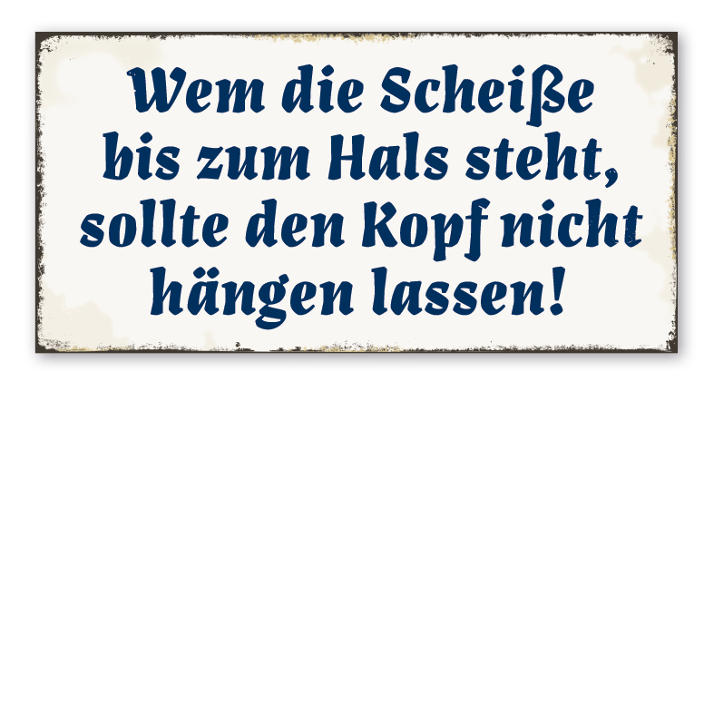 Retro Schild Wem die Scheiße bis zum Hals steht, sollte den Kopf nicht hängen lassen