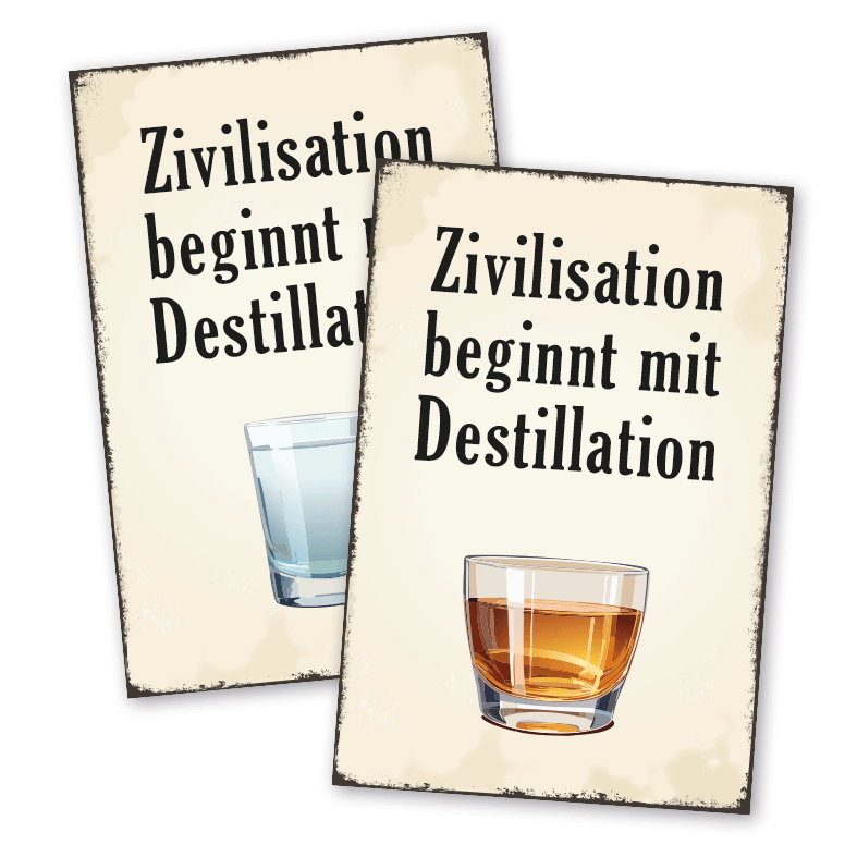 Retro Schild Zivilisation beginnt mit Destillation - 2 Ausführungen