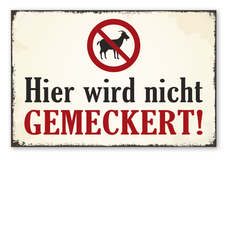 Merkmale des Retro Schildes Hier wird nicht gemeckert - VIN-2788: