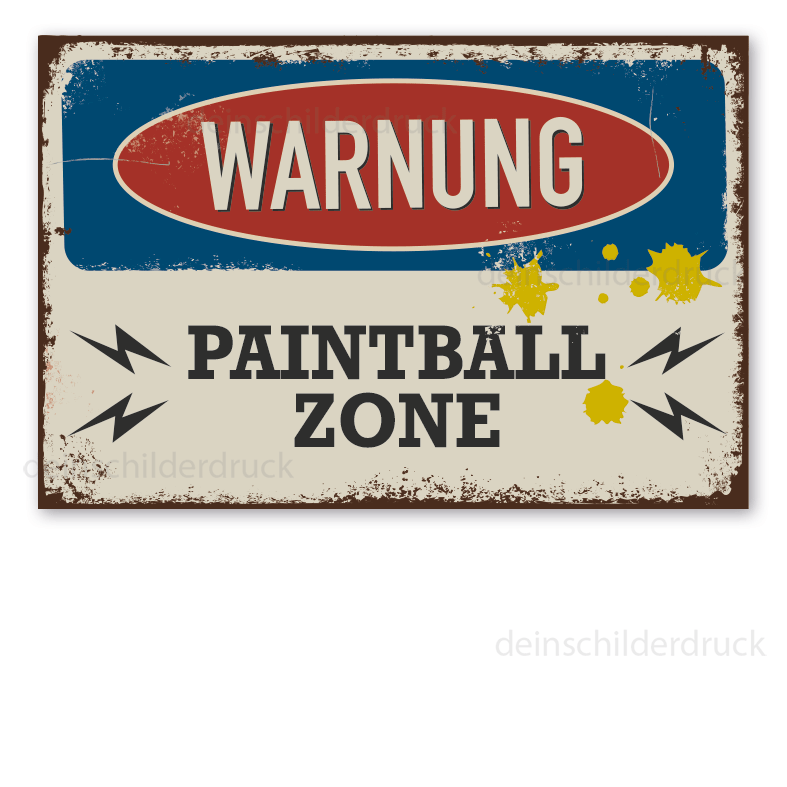 Merkmale des Retro Warnschildes / Vintage Schildes Warnung - Paintball Zone - VIN-1222: