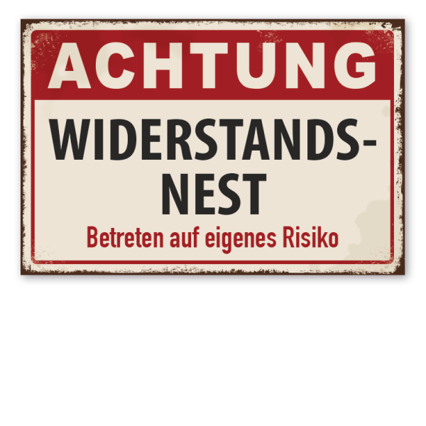 Produktinformationen "Retro Schild Achtung - Widerstandsnest - Betreten auf eigenes Risiko"