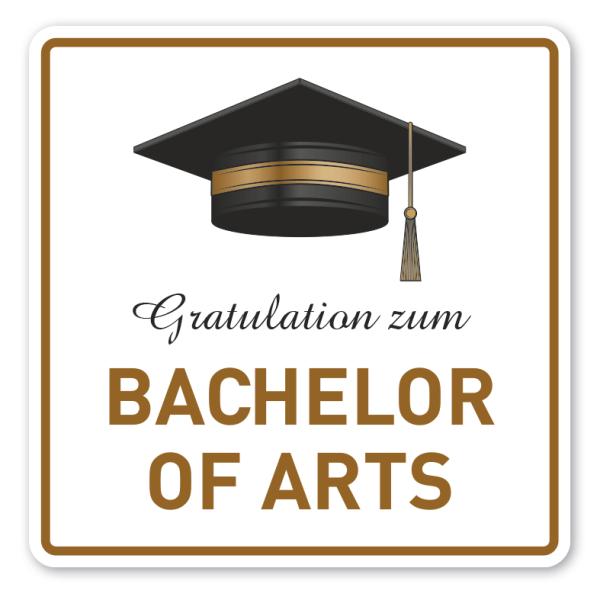 Originelles Schild Gratulation zum Bachelor of Arts. In diversen Größen erhältlich – auch in einer individualisierten Ausführung.