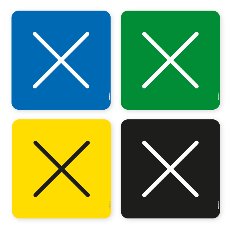 Bodenkleber für Bewegungspfade - Farbige Quadrate mit X - BWP-01-223 - Motivelemente von BWP-01-SET-32