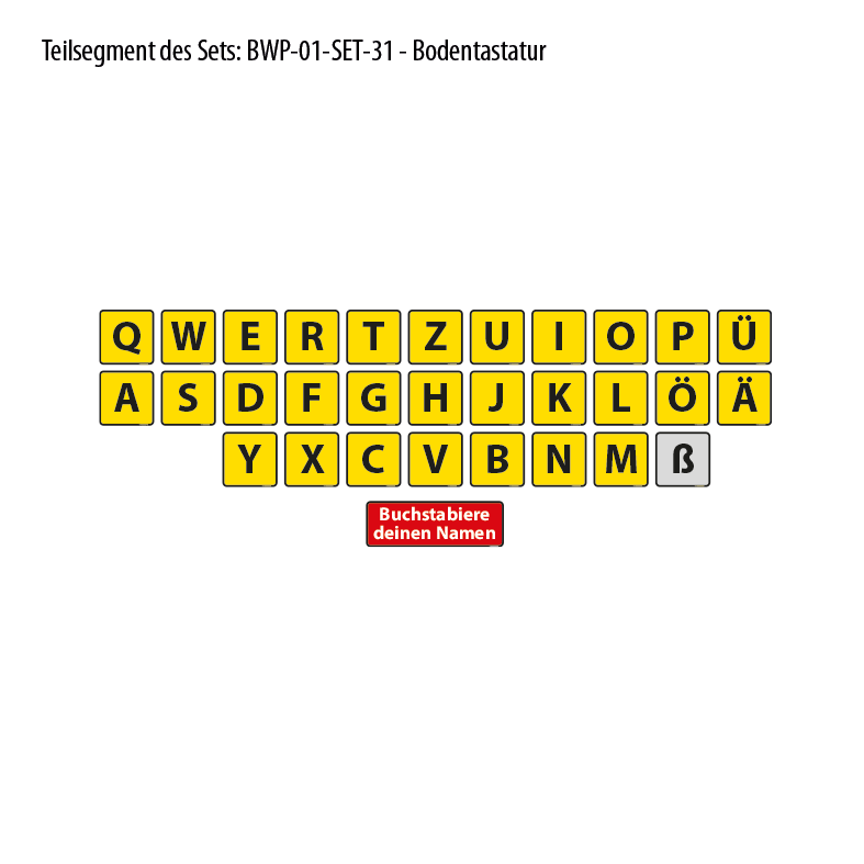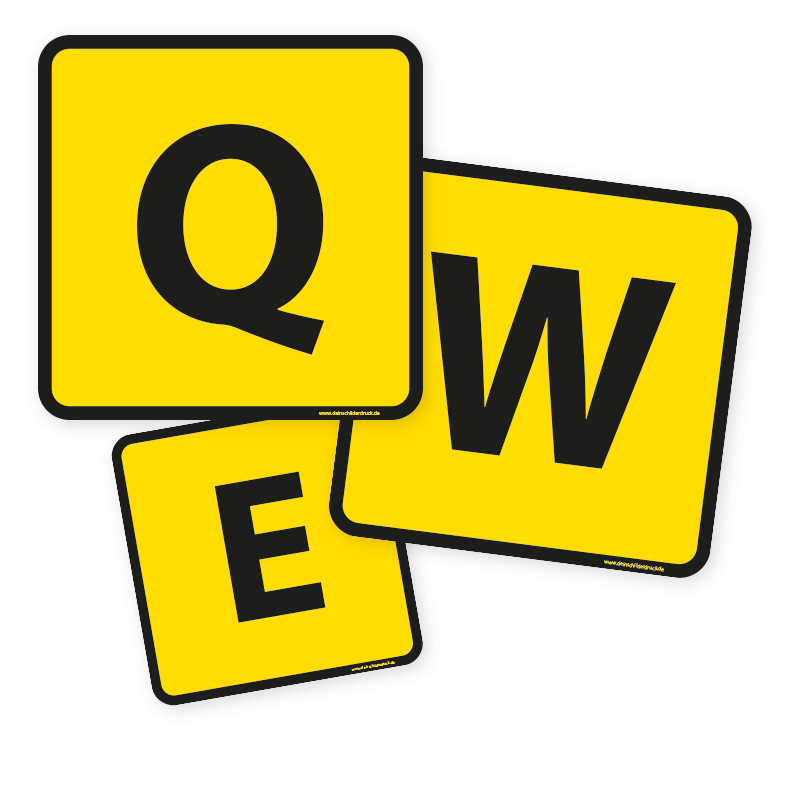 - 20 x 20 cm (Breite x Höhe) - gelbe Ausführung mit Buchstaben einer Computertastatur A-Z, Umlauten und einem grauen Eszett – 1 Stück je nach Auswahl