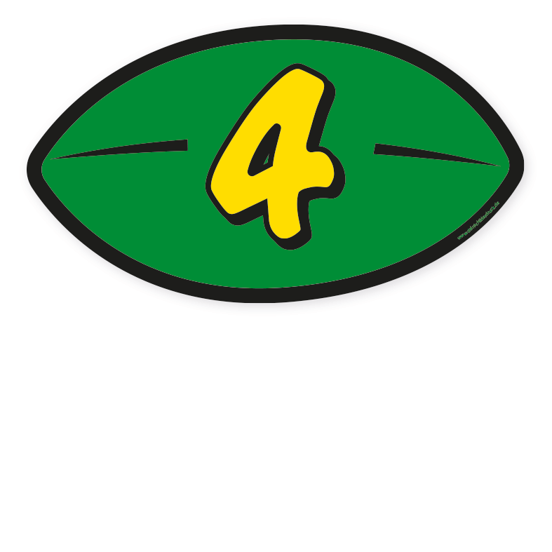 Ausreichende Bewegung trägt erheblich zu einer gesunden körperlichen und geistigen Entwicklung von Kindern bei. Leider verbringen Kinder mittlerweile viel Zeit mit Fernsehen, Online-Spielen und Spielkonsolen. Auch bestimmt der Computer schon vielfach den kindlichen Alltag – wichtige Bewegungszeit geht durch den Gebrauch dieser Medien verloren. Um diesen Defiziten entgegenzuwirken, ist es erforderlich, Kinder verstärkt zur Bewegung zu animieren – im Kreise der Familie, auf Spielplätzen, aber auch schon in Kindergärten und Grundschulen sollte auf eine Bewegungsförderung besonderer Wert gelegt werden. Bewegungspfade helfen bei dieser Aufgabe, sie regen Kinder an, sich spielerisch zu bewegen und unterstützen positiv ihre motorische Entwicklung. Unsere mehrteiligen Bewegungspfad-Sets für den Innenbereich sind in kindgerechten Ausführungen als Wand- oder Bodenkleber zur Selbstverklebung erhältlich, sie sind mit anderen Sets kombinierbar und können mit ebenfalls erhältlichen Einzelelementen einfach verlängert werden. So lassen sich auch umfangreiche, ineinander verwundene und sehr lange Bewegungspfade in großen Bereichen problemlos verwirklichen. Merkmale dieses Artikels: Bodenkleber für Bewegungspfade - Pflanze - Blätter mit Zahlen 1-12 - Motivelemente von BWP-01-SET-01 Material: Hochleistungs-Vynil-Folie, Stärke 0,1 mm, transparentes, rutschfestes (DIN 51130, Klasse R9) Polycarbonat-Schutzlaminat, Stärke 0,125 mm Schwer entflammbar nach DIN EN 15501-1 Größe/Ausführung: ca. 29 x 16 cm – 1 Stück mit einer Zahl (1-12) Verarbeitung: formgeschnitten Verpackungseinheit: 1 Bodenkleber im flachen Karton Einsatzbereiche: Innenanwendung – Flure und freie Bereiche in Kindergärten, Schulen und Freizeiteinrichtungen Bitte beachten Sie: Dieser Artikel ist auch ein Element eines Aufkleber-Sets. Er kann als Ersatz bei Beschädigung oder zur alleinigen Anwendung genutzt werden – z.B. zu Dekorationszwecken. Unsere langlebigen Bodenkleber für Bewegungspfade sind für alle glatten Böden (gegossen oder fest mit dem Untergrund verbunden) im Innenbereich geeignet. Für eine optimale Haftung ist es erforderlich, dass die Untergründe frei von jeglichen Trennmitteln sind wie Staub, Schmutz, Fett und Wachs. Bitte reinigen Sie daher vor der Montage die Böden mit geeigneten Reinigungsmitteln. Die Planung umfangreicher Bewegungspfade kann kompliziert sein, insbesondere ohne die Möglichkeit, alle Pfadmotive in ihrer Anordnung zu überblicken. Für diesen Fall stellen wir Ihnen unsere Planungs-PDF-Dateien zur Verfügung, in den unsere Bewegungspfad-Sets sowie einige Sondermotive im Maßstab 1:10 abgebildet sind. Sofern diese PDF-Daten 1:1 ausgedruckt werden und Sie einen geeigneten Untergrund (z.B. Zeichenkarton) mit dem Aufriss Ihrer Räumlichkeiten im gleichen Maßstab 1:10 angefertigt haben, können Sie die ausgedruckten Motive grob ausschneiden, auf Ihrem Untergrund beliebig hin und her schieben und für eine dauerhafte Planungsübersicht mit einem Klebestift fixieren. Diese analoge Vorgehensweise ist simpel und ermöglicht zugleich, auch mehreren Personen an der Planung mitzuwirken. Die Montage unserer Bewegungspfad-Aufkleber ist einfach und kann auch von Ungeübten ohne Probleme sicher ausgeführt werden. Sollten Sie dennoch bei der Montage einen Bodenkleber falsch kleben oder beschädigen, bitten wir um Verständnis, dass wir keinen kostenlosen Ersatz leisten. Weitere Informationen zur Montage können Sie im PDF-Format weiter unten unter "Verfügbare Downloads" oder über unseren Download-Bereich unter "Bewegungspfade" aufrufen. Über unseren Download-Bereich können Sie auch unsere Planungs-PDF-Dateien aufrufen.