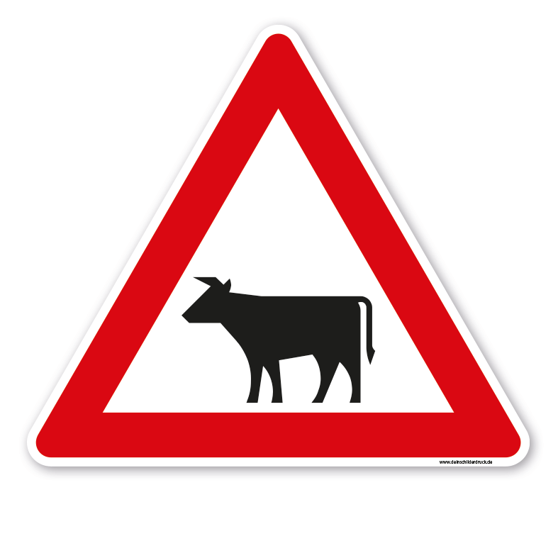 Merkmale dieses Artikels zur Verkehrserziehung von Kindern: Bodenkleber für Lern- und Bewegungspfade - Achtung Viehtrieb Aufstellung rechts - Verkehrszeichen VZ-101-12 - BWP-02-13