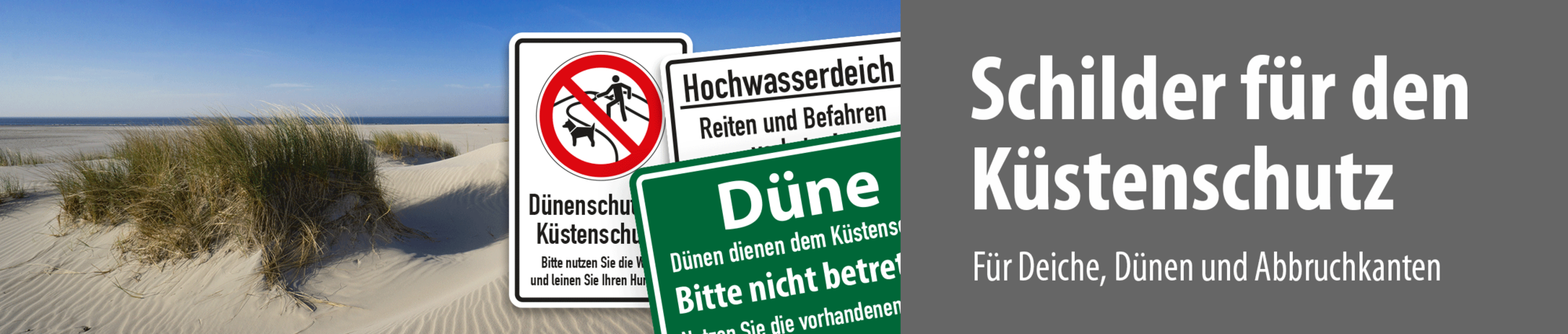Schilder und Kennzeichnungen zum Küstenschutz – für Deiche, Dünen und Warnschilder vor Abbruchkanten