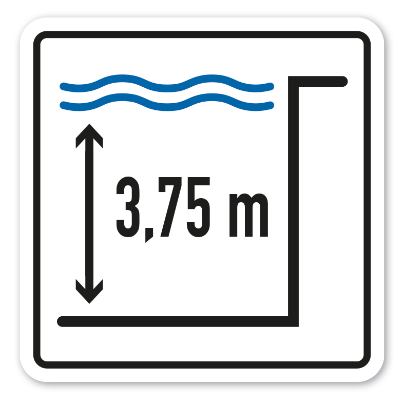 Merkmale des Informationsschildes Wassertiefe mit Ihrer individuellen Tiefenangabe – WS-INF-16:
