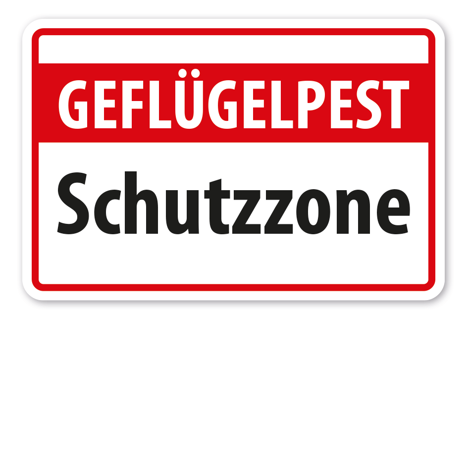 Schild Geflügelpest Schutzzone. In diversen Größen erhältlich, auch mit Ihrem Wunschtext.