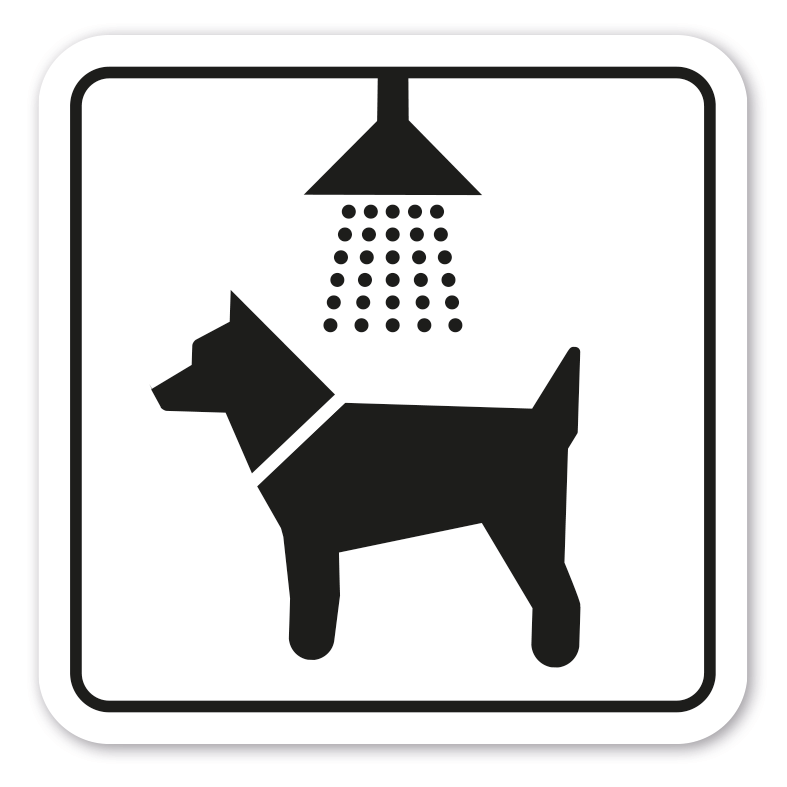 Schild zur Kennzeichnung von Stellen, an den Hunde geduscht werden können in vier Farbvarianten.