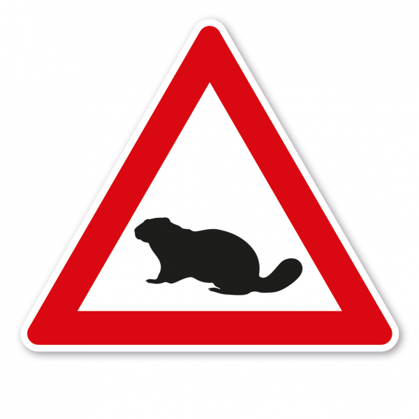 Verkehrsschild / Gefahrenschild Achtung Biber. Gefahrenschilder nach StVO und praxisbewährte Schilder stellen im Straßenverkehr eine Anordnung dar, die am Standort des Schildes oder ab diesem zu befolgen ist. Dieses Verkehrszeichen kann als Einzelschild oder in Kombination mit Zusatzzeichen, die die Symbolik näher erläutern, eingesetzt werden.