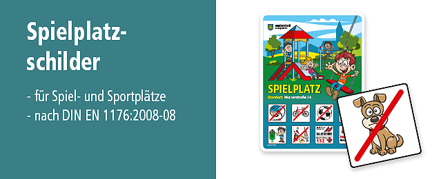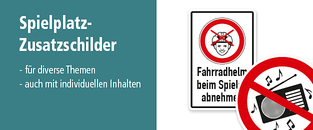 Spielplatzschilder gemäß europäischer Spielplatznorm DIN EN 1176:2008-08, Kinderschilder für Verkehrssicherheit und Zusatzschilder für Spielplätze und Sportstätten