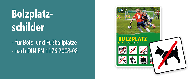 Wir führen in der Kategorie Spiel und Sport zahlreiche Spielplatzschilder, Bolzplatzschilder und Fußballschilder, diverse Spielplatz-Zusatzschilder für verschiedene Spiel- und Freizeitaktivitäten sowie die erforderlichen Sicherheitshinweise nach der europäischen Norm DIN EN 1176:2008-08. Die Schilderausführungen reichen von einfachen Textschildern, aussagekräftigen Kombinationsschildern mit genormten oder praxisbewährten Symbolen bis hin zu innovativen, zeitgemäßen Spielplatzschilder-Systemen mit zahlreichen Piktogrammen zur freien Auswahl und vielfälltigen Individualisierungsmöglichkeiten. Wenn Sie Spielplatzschilder suchen, die der europäischen Norm entsprechen, Spielplatzschilder, die Sie nach Bedarf personalisieren können oder Spielplatzschilder für eine bedarfsbezogene Beschilderung, sind Sie bei deinschilderdruck.de richtig. Unsere Spielplatzschilder werden von Mitarbeitern mit langjähriger Erfahrung im Bereich der Spielplatzbeschilderung geplant und kindgerecht grafisch umgesetzt. Die jeweiligen Piktogramme zum Spielplatzbetrieb werden ständig erweitert und an die aktuellen Anforderungen angepasst.