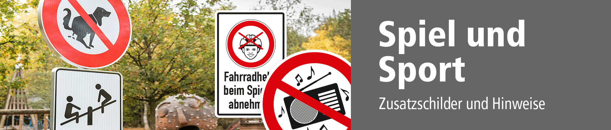 Es gibt unzählige Spiel- und Sportstätten sowie Bereiche für die verschiedensten Freizeitaktivitäten, die an die jeweilige Aktivität angepasste Spielplatz- oder Spielfeldschilder benötigen. Dies können Hinweise zum Regelwerk der Sportarten sein, Altersbeschränkungen für die Nutzung von Spiel- und Sportgeräten oder allgemeine Schilder mit diversen Verboten, Geboten und Warnungen, die gesetzlich vorgeschrieben oder praxisbezogen sind – z.B. Hinweise für Hundehalter, dass die jeweilige Anlage für Hunde verboten ist und Abfälle ordnungsgemäß entsorgt werden müssen, Schilder mit Rauchverboten für Spielplätze, aber auch wichtige Hinweise zur Spielsicherheit – z.B. dass Kinder vor dem Spielen aufgrund möglicher Strangulationsgefahr auf den Spielgerüsten ihre Fahrradhelme ablegen sollen.