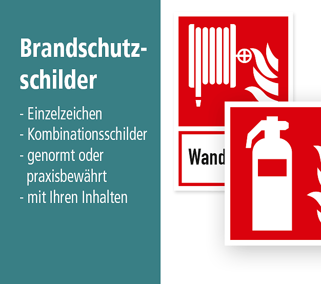 Wir bieten Brandschutzschilder in zahlreichen Größen und Ausführungen für jeden Einsatzzweck an – als einzelne Brandschutzzeichen mit einer unmissverständlichen Symbolik, aber auch als Kombinationsschilder mit zusätzlichen Richtungspfeilen und Textinhalten, die die Bedeutung einzelner Brandschutzzeichen unterstreichen oder aufgrund örtlicher Gegebenheiten erforderlich sind. Die Basisfarbe der Brandschutzschilder ist in der Regel rot. Im Innenbereich sollen Brandschutzzeichen und Brandschutzschilder nur langnachleuchtend zum Einsatz kommen, um auch im Falle eines Stromausfalls oder einer starken Rauchentwicklung, sofern keine strombetriebene Notbeleuchtung installiert ist, die Orientierung sicherzustellen. Im Außeneinsatz ist eine reflektierende Variante zu bevorzugen.