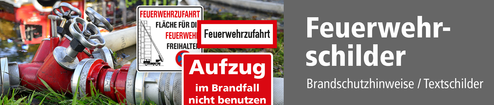 Feuerwehrschilder und Brandschutzhinweise sind Sicherheitshinweise rund um den Brandschutz – zur Beschilderung von feuergefährdeten Bereichen und Räumen sowie Brandschutzeinrichtungen. Feuerwehrschilder kommen aber auch zum Einsatz, um Flächen, Bereiche und Wege für die Feuerwehr zu kennzeichnen. Dies erfolgt mit geeigneten Schildern in Form von Parkverboten und Feuerwehrzufahrthinweisen in vielfältigen Ausführungen. Feuerwehrschilder und Brandschutzhinweise für den Außenbereich sollten für eine bessere Wahrnehmung reflektierend ausgerüstet sein, im Innenbereich hingegen langnachleuchtend, um im Falle eines Stromausfalls oder einer starken Rauchentwicklung, sofern keine strombetriebene Notbeleuchtung installiert ist, die Orientierung sicherzustellen.