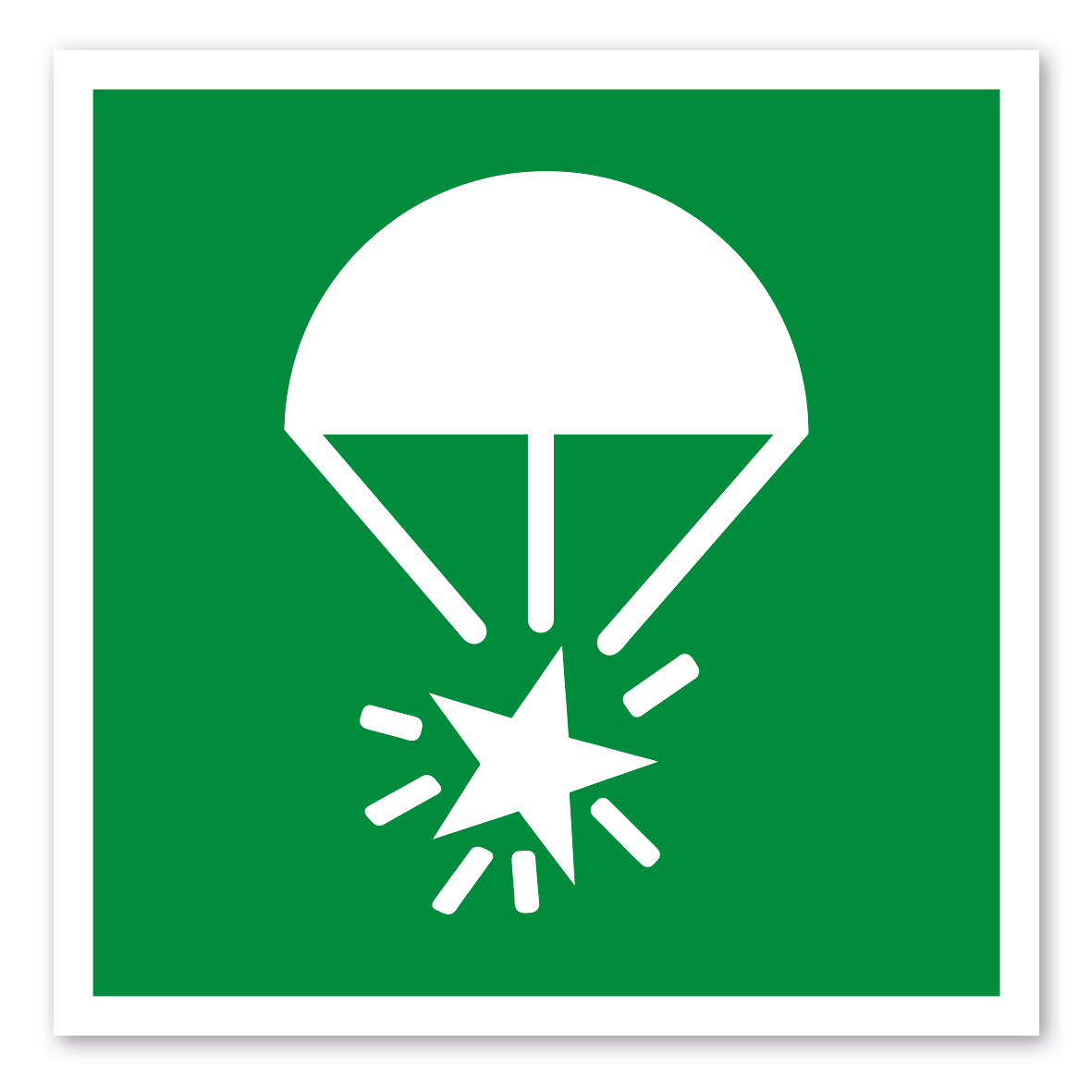 Rettungszeichen Leuchtrakete mit Fallschirm – nach ISO 7010 und ASR A 1.3 (2013) – Sicherheitskennzeichnungs für Schiffe und Boote.