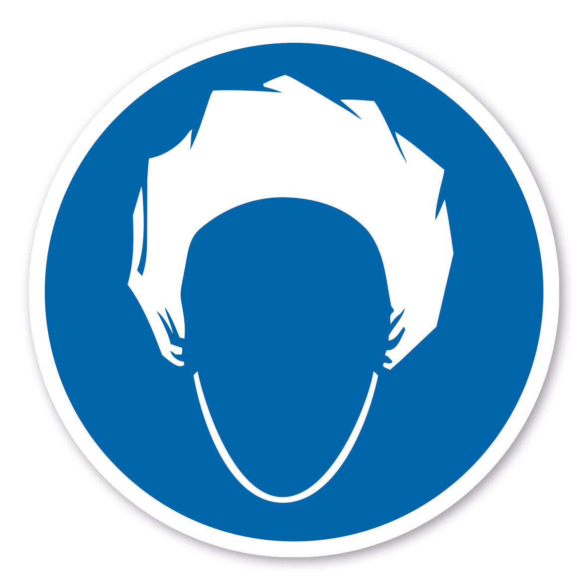 Gebotszeichen Kopfhaube tragen – nach älterer Norm oder praxisbewährt.