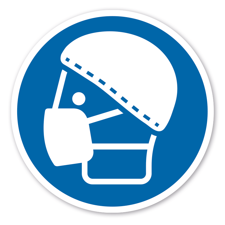 Gebotszeichen Kopfschutz benutzen – nach ISO 7010 und ASR A 1.3 (2013) – weist darauf hin, dass vor Beginn der Arbeit ein Gesichtsschutz zu benutzen ist, um Verletzungen durch fliegende Partikel zu vermeiden.   Merkmale des Gebotszeichens Kopfschutz benutzen – ISO 7010 - M014: Ausführung: Grundfarbe blau, Symbol und Rand weiß Norm: nach ISO 7010 und ASR A 1.3 (2013) Material:  Selbstklebende Folie   PVC - Hartschaum 3 mm   Aluminium 2 mm  Abmessungen:  Ø 100 mm – Erkennungsweite bis 4 m  Ø 200 mm – Erkennungsweite bis 8 m  Ø 300 mm – Erkennungsweite bis 12 m  Ø 400 mm – Erkennungsweite bis 16 m  Ø 500 mm – Erkennungsweite bis 20 m Verpackungseinheiten: 1 Gebotszeichen oder 1 Satz bei entsprechender Kennzeichnung  Bitte beachten Sie: Dieses Gebotszeichen entspricht der international gültigen Norm ISO 7010 und kann bei Nach- und Neubeschilderungen in Betrieben verwendet werden.  Weitere Informationen zu Gebotszeichen und zur Sicherheitskennzeichnung sowie eine Übersicht aller verfügbaren Gebotszeichen finden Sie in unserem Download-Bereich.