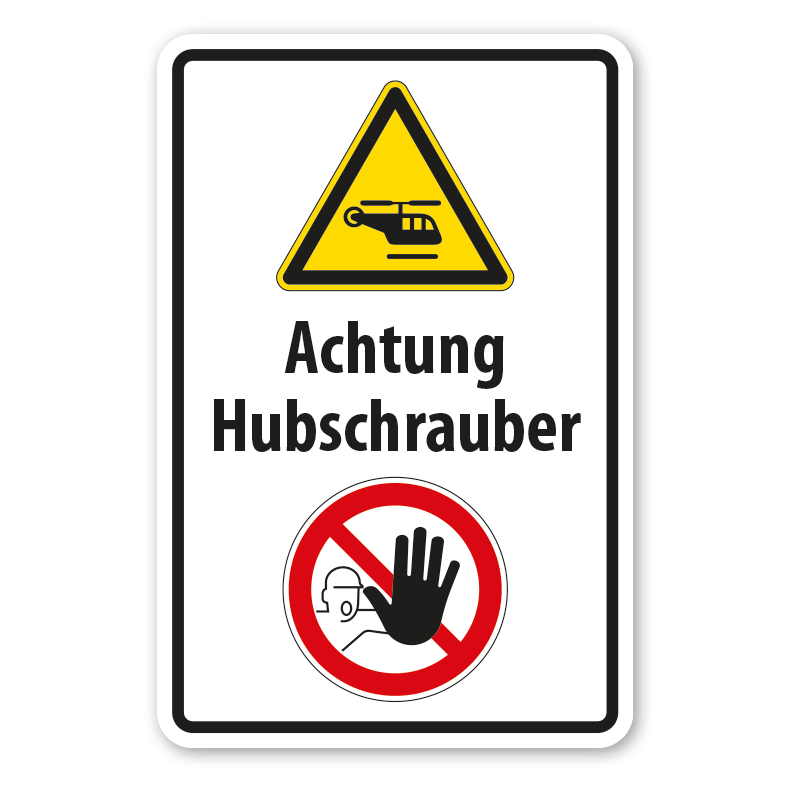 Merkmale des Verbotsschildes  - Warnschildes - Achtung Hubschrauber - VBT-160-K: