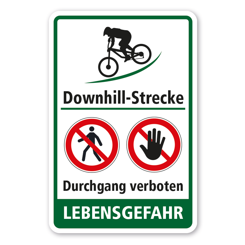 Merkmale des Verbotsschildes Downhill-Strecke - Durchgang verboten - Lebensgefahr - VBT-197-K: