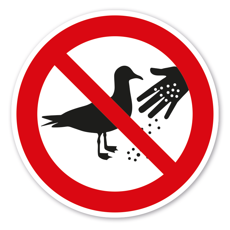 Verbotszeichen Möwen füttern verboten. Verbotszeichen weisen in der Regel darauf hin, dass ein bestimmtes Verhalten verboten ist, um eine Gefährdung von Personen oder Maschinen abzuwenden oder dass bestimmte Handlungen aus anderen Gründen unerwünscht sind.