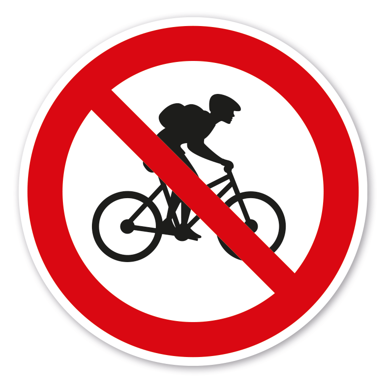 Verbotszeichen Mountainbike fahren verboten - praxisbewährtes Zeichen. Verbotszeichen weisen in der Regel darauf hin, dass ein bestimmtes Verhalten verboten ist, um eine Gefährdung von Personen oder Maschinen abzuwenden oder dass bestimmte Handlungen aus anderen Gründen unerwünscht sind.