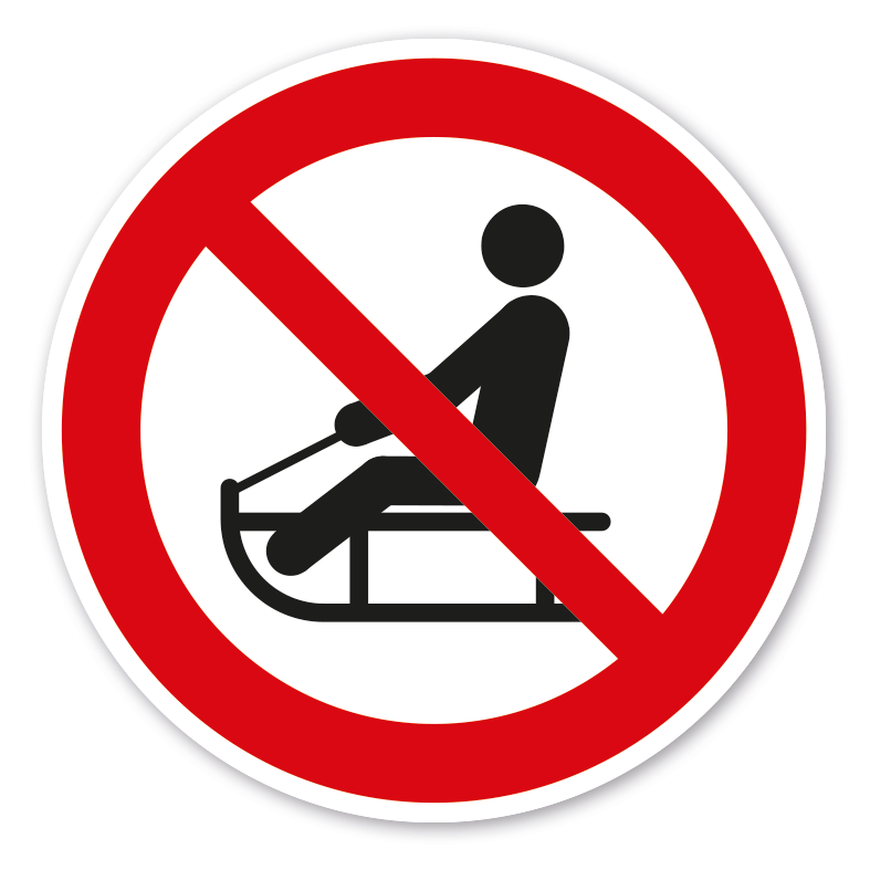 Verbotszeichen Schlitten fahren - Rodeln verboten - praxisbewährtes Zeichen. Verbotszeichen weisen in der Regel darauf hin, dass ein bestimmtes Verhalten verboten ist, um eine Gefährdung von Personen oder Maschinen abzuwenden oder dass bestimmte Handlungen aus anderen Gründen unerwünscht sind.