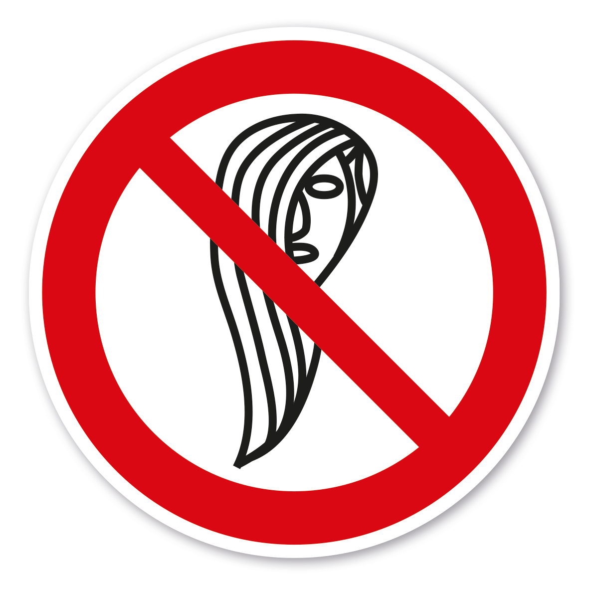 Verbotszeichen Bedienung mit langen Haaren ist verboten – ältere Norm oder praxisbewährtes Zeichen. Verbotszeichen weisen in der Regel darauf hin, dass ein bestimmtes Verhalten verboten ist, um eine Gefährdung von Personen oder Maschinen abzuwenden oder dass bestimmte Handlungen aus anderen Gründen unerwünscht sind.