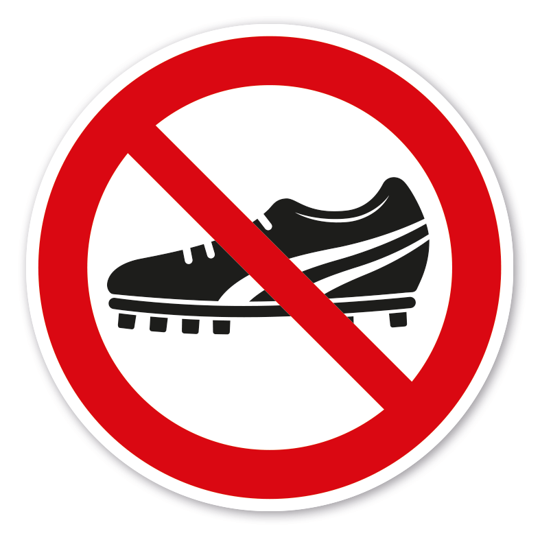 Verbotszeichen Stollenschuhe verboten. Verbotszeichen weisen in der Regel darauf hin, dass ein bestimmtes Verhalten verboten ist, um eine Gefährdung von Personen oder Maschinen abzuwenden oder dass bestimmte Handlungen aus anderen Gründen unerwünscht sind.