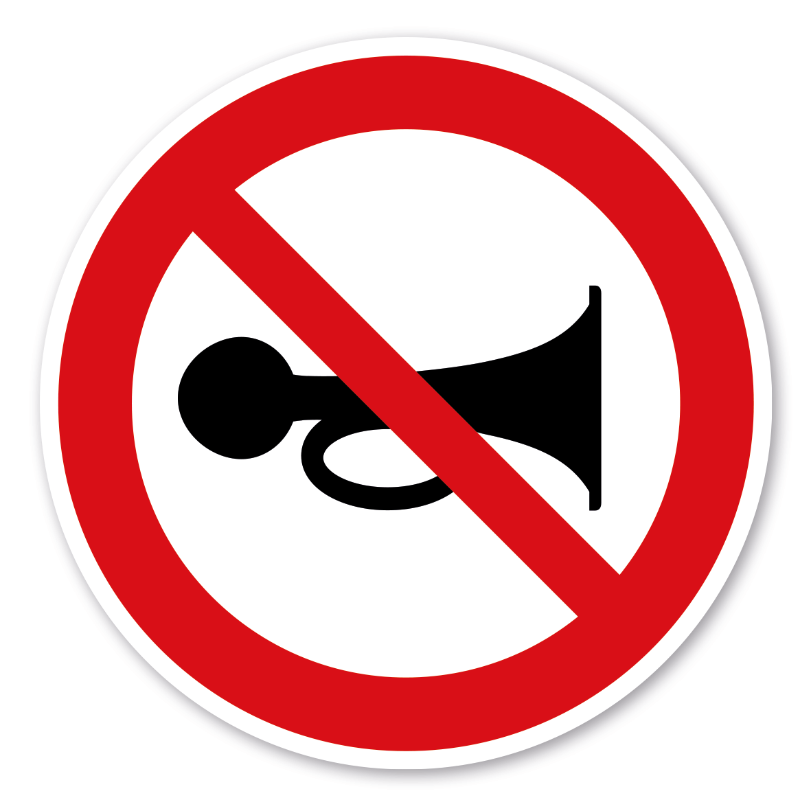 Verbotszeichen Lärm, Hupen, Tröten verboten – ältere Norm oder praxisbewährtes Zeichen. Verbotszeichen weisen in der Regel darauf hin, dass ein bestimmtes Verhalten verboten ist, um eine Gefährdung von Personen oder Maschinen abzuwenden oder dass bestimmte Handlungen aus anderen Gründen unerwünscht sind.