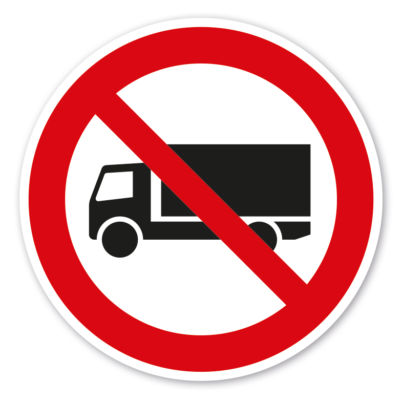 Verbotszeichen Für Lastkraftwagen - LKW - verboten - praxisbewährtes Zeichen. Verbotszeichen weisen in der Regel darauf hin, dass ein bestimmtes Verhalten verboten ist, um eine Gefährdung von Personen oder Maschinen abzuwenden oder dass bestimmte Handlungen aus anderen Gründen unerwünscht sind.