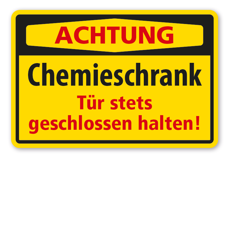 Warnschild Achtung Chemieschrank - Tür stets geschlossen halten.
