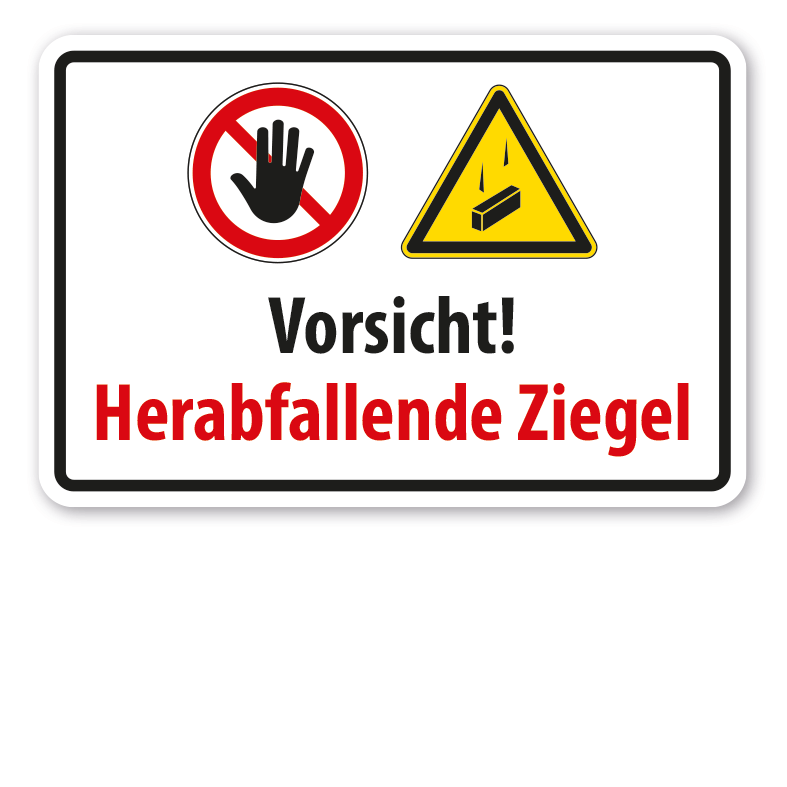 Warnschild Vorsicht - Herabfallende Ziegel – in vielen Größen erhältlich.