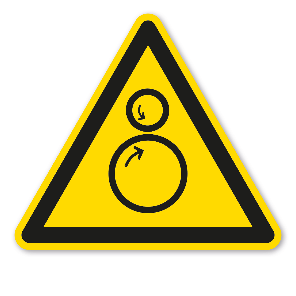 Warnzeichen Warnung vor Einzugsgefahr – ältere Norm oder praxisbewährtes Zeichen. Warnzeichen sind Sicherheitszeichen, die vor einer Gefahrstelle oder Gefahrensituation warnen. Sie weisen darauf hin, dass eine erhöhte Aufmerksamkeit erforderlich ist, um eine Gefährdung von Personen abzuwenden.