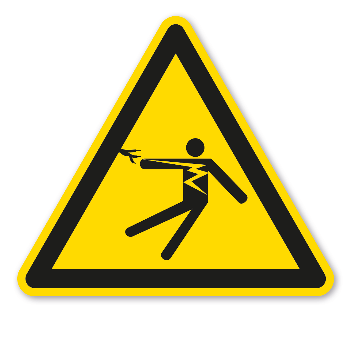 Warnzeichen Warnung vor gefährlicher elektrischer Spannung – ältere Norm oder praxisbewährtes Zeichen. Warnzeichen sind Sicherheitszeichen, die vor einer Gefahrstelle oder Gefahrensituation warnen. Sie weisen darauf hin, dass eine erhöhte Aufmerksamkeit erforderlich ist, um eine Gefährdung von Personen abzuwenden.