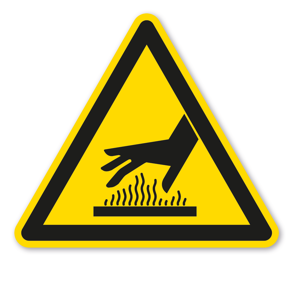 Warnzeichen Warnung vor heißer Oberfläche – ältere Norm oder praxisbewährtes Zeichen. Warnzeichen sind Sicherheitszeichen, die vor einer Gefahrstelle oder Gefahrensituation warnen. Sie weisen darauf hin, dass eine erhöhte Aufmerksamkeit erforderlich ist, um eine Gefährdung von Personen abzuwenden.