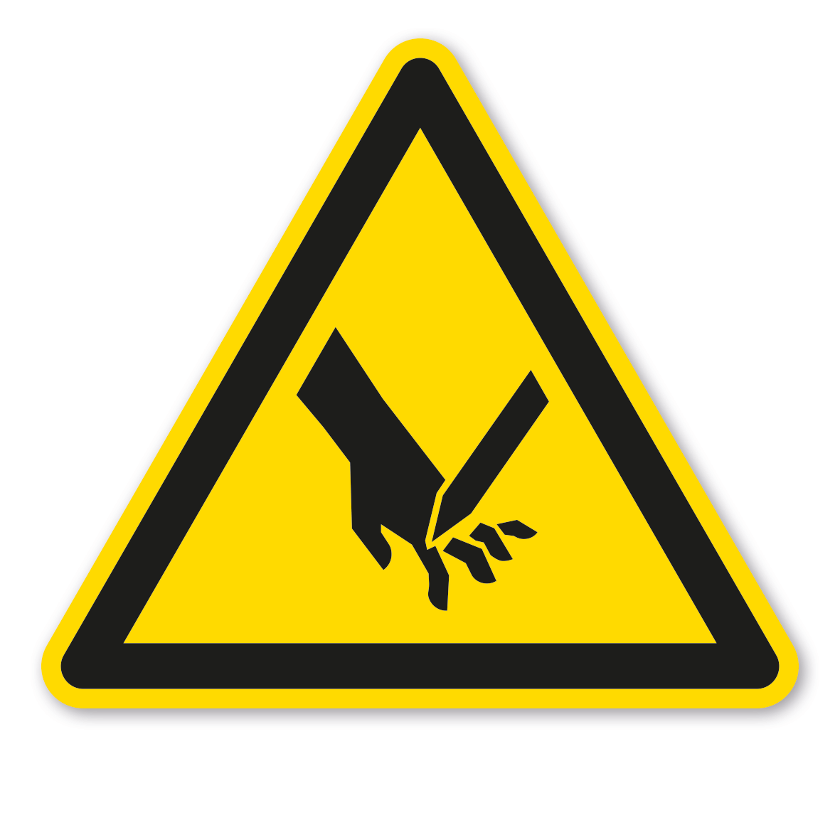 Warnung vor Handverletzungen nach ISO 7010 und ASR A 1.3 (2013) – weist auf eine Gefahrstelle oder Gefahrensituation hin, die eine erhöhte Aufmerksamkeit erfordert, um eine Gefährdung von Personen abzuwenden. Gefahr: Gefährdung von Menschen durch Verletzungsgefahr an Maschinen oder durch Werkzeuge – z.B. Stanz- und Schneidwerkzeuge sowie sich drehende Walzen.      Merkmale des Warnzeichens Warnung vor Handverletzungen – ISO 7010 - W024: Ausführung: Grundfarbe gelb, Rand und Symbol schwarz Norm: nach ISO 7010 und ASR A 1.3 (2013) Material:  Selbstklebende Folie   PVC - Hartschaum 3 mm   Aluminium 2 mm   Abmessungen: (nicht in allen Materialien verfügbar)  100 mm Seitenlänge – Erkennungsweite bis 3 m  200 mm Seitenlänge – Erkennungsweite bis 6 m  300 mm Seitenlänge – Erkennungsweite bis 9 m  400 mm Seitenlänge – Erkennungsweite bis 12 m  500 mm – Erkennungsweite bis 15 m Verpackungseinheiten: 1 Warnzeichen oder 1 Satz bei entsprechender Kennzeichnung  Bitte beachten Sie: Dieses Warnzeichen entspricht der international gültigen Norm ISO 7010 und kann bei Nach- und Neubeschilderungen in Betrieben verwendet werden.  Weitere Informationen zu Warnzeichen und zur Sicherheitskennzeichnung sowie eine Übersicht aller verfügbaren Warnzeichen finden Sie in unserem Download-Bereich.