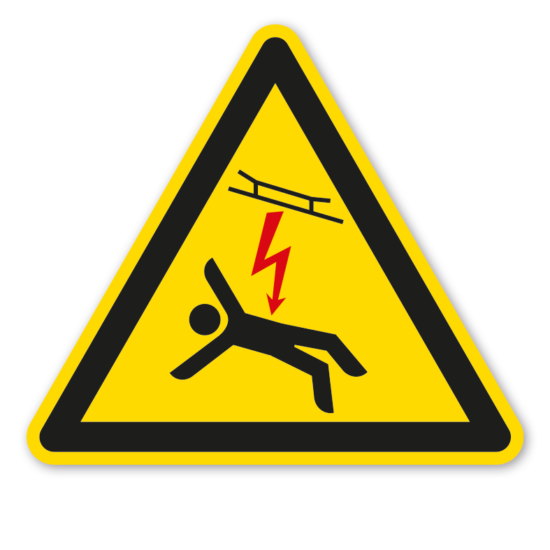 Warnzeichen Warnung vor elektrischer Oberleitung - Hochspannung – praxisbewährtes Zeichen. Warnzeichen sind Sicherheitszeichen, die vor einer Gefahrstelle oder Gefahrensituation warnen. Sie weisen darauf hin, dass eine erhöhte Aufmerksamkeit erforderlich ist, um eine Gefährdung von Personen und Tieren abzuwenden.