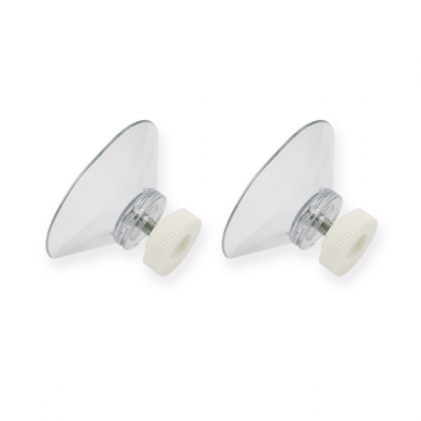 Ausführung: transparente Saugnäpfe mit intergriertem Gewinde und transparenter Rändelmutter