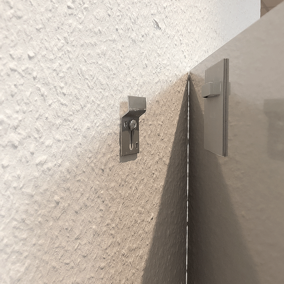- Lassen Sie den Kleber der Schilderhalter vor dem Aufhängen aushärten. Wir empfehlen 24 Stunden bei üblicher Wohnraumtemperatur.